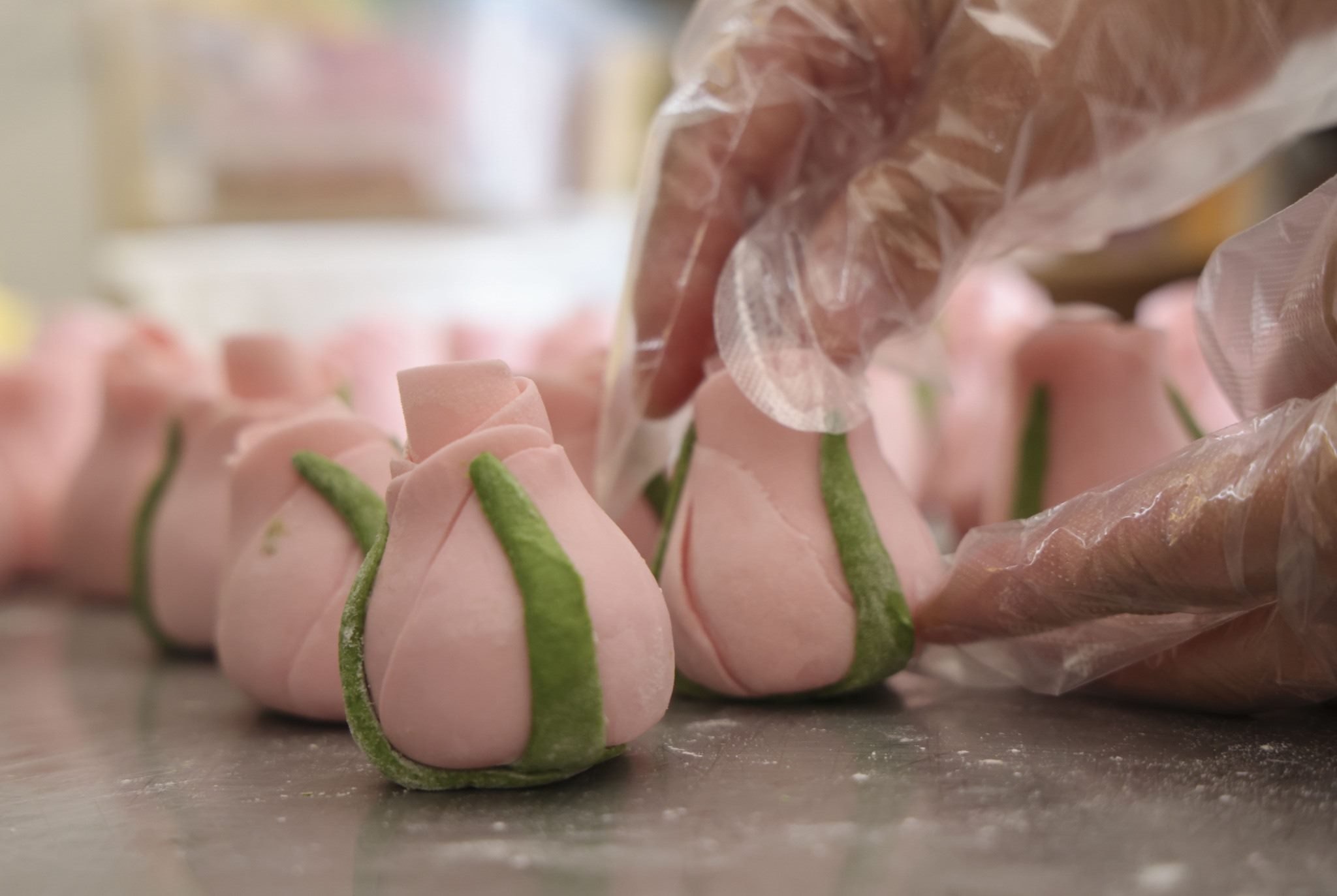 2023年5月12日,山東臨沂,母親節(jié)來臨之際,面點(diǎn)師們制作出色彩鮮艷、軟糯香甜的花饃,受到廣大顧客青睞。視覺中國(guó)