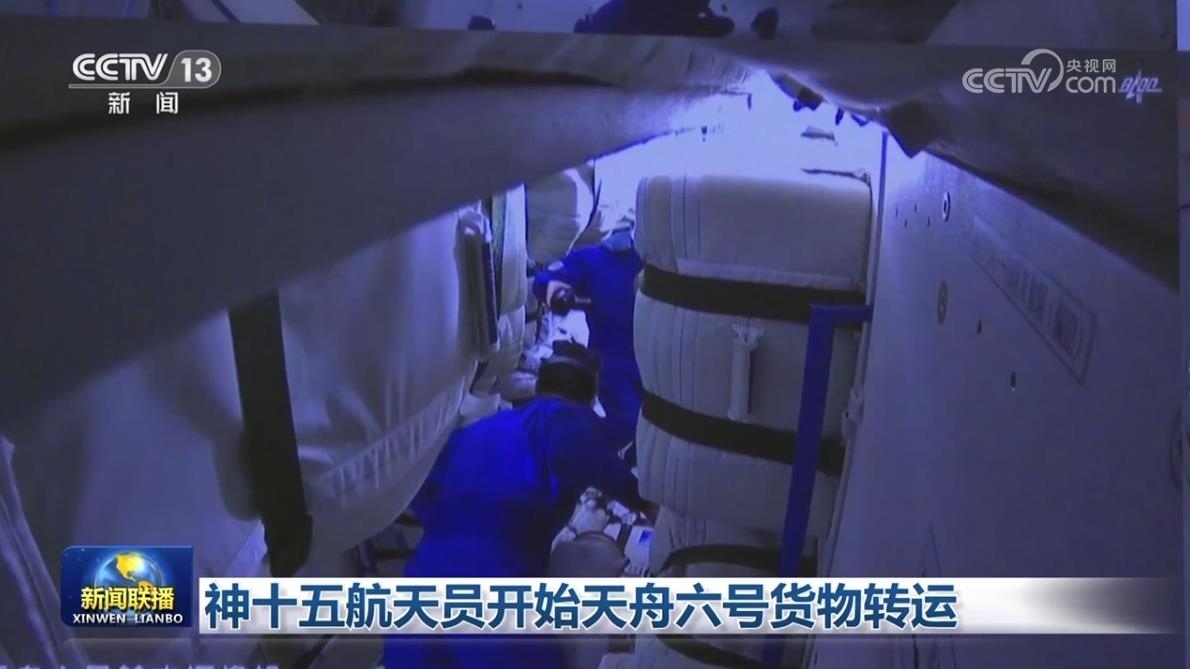 央視網(wǎng)消息(新聞聯(lián)播):今天(5月12日)早上8時(shí)許,神舟十五號(hào)航天員乘組打開(kāi)天舟六號(hào)貨運(yùn)飛船艙門(mén),按計(jì)劃開(kāi)展貨物轉(zhuǎn)運(yùn)等相關(guān)工作。天舟六號(hào)裝載了神舟十六號(hào)和神舟十七號(hào)6名航天員在軌駐留消耗品,空間站所需的推進(jìn)劑、應(yīng)用實(shí)驗(yàn)和試驗(yàn)裝置等物資,總重量超過(guò)7噸。