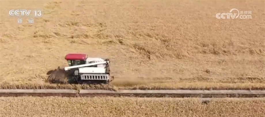 總臺記者 趙雄:歡迎大家跟隨我們的鏡頭一起走進(jìn)成都平原,來感受豐收的喜悅。我現(xiàn)在所在的位置是四川邛崍市的萬畝糧油示范基地。在我身后,200多畝成片的小麥已經(jīng)成熟,放眼望去,金黃的麥穗在風(fēng)中搖曳,麥浪翻滾煞是喜人。在麥田上,我們可以看到多臺大型收割機(jī)來回穿梭作業(yè),一簇簇麥穗被卷入收割機(jī)倉,收割、脫粒、除雜一氣呵成,金色麥粒傾瀉入倉。