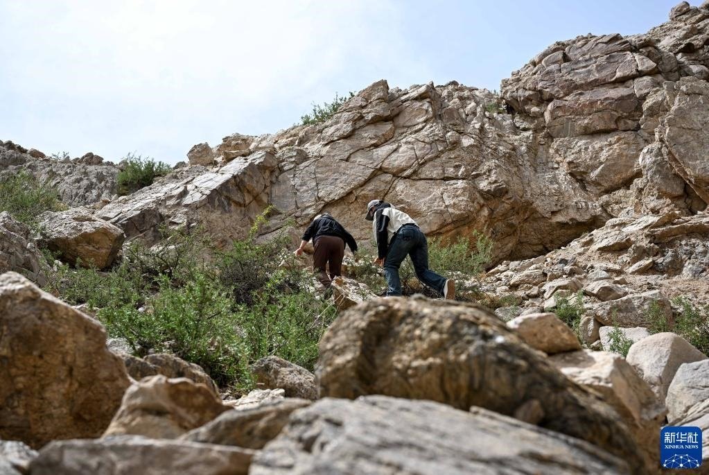 5月13日,駝峰(長城)文物保護(hù)隊(duì)員許繼龍?jiān)谘膊榘⒗谱笃煲惶幨z址。