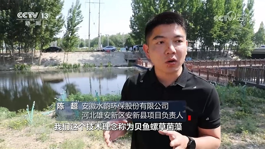 安徽水韻環(huán)保股份有限公司河北雄安新區(qū)安新縣項目負(fù)責(zé)人陳超:“水下是木樁搭的貝床。貝分為濾食性和刮食性,對水體里面浮游生物,尤其像菌藻類水里面的COD(化學(xué)需氧量)、氨氮、總磷,具有一定的消解作用。我們這個技術(shù)理念稱為貝魚螺草菌藻,也就是我們常說的大魚吃小魚、小魚吃蝦米,形成閉環(huán)生物鏈,讓這個水體自凈能力提升,能穩(wěn)定在三類到四類水。”