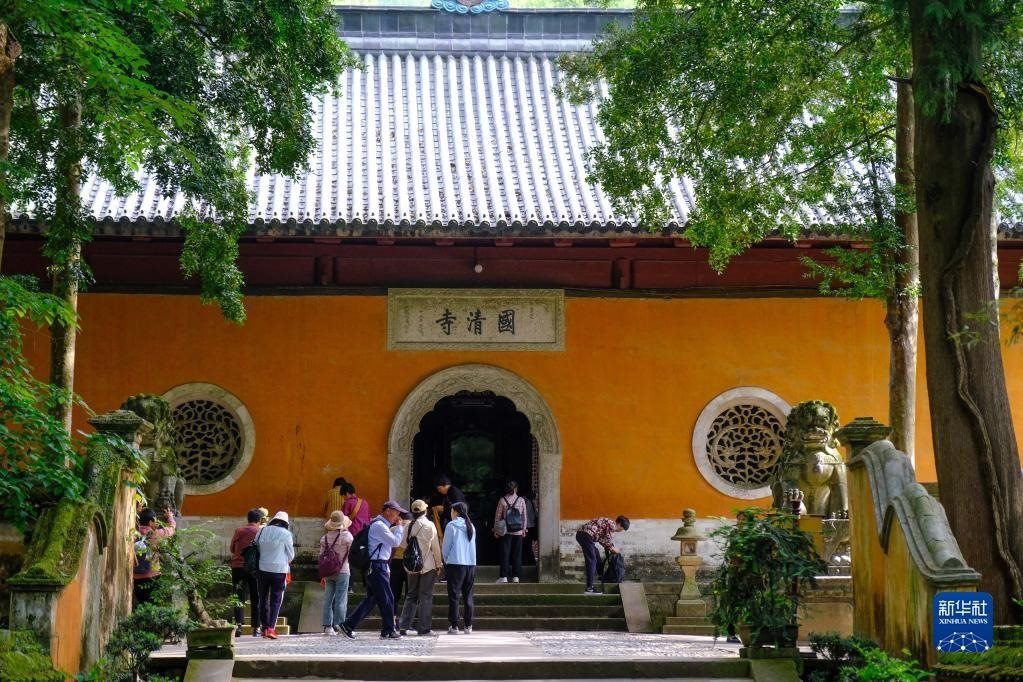 5月16日,游客在天臺縣國清寺參觀。