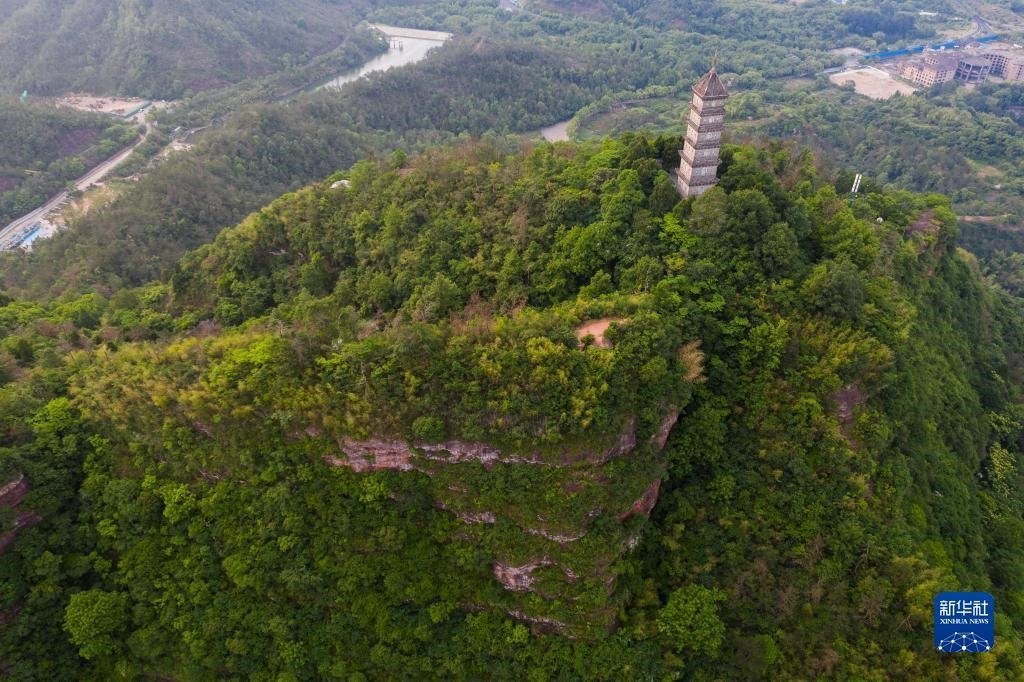 俯瞰天臺縣的赤城山及山頂?shù)牧哄?月16日攝,無人機照片)。