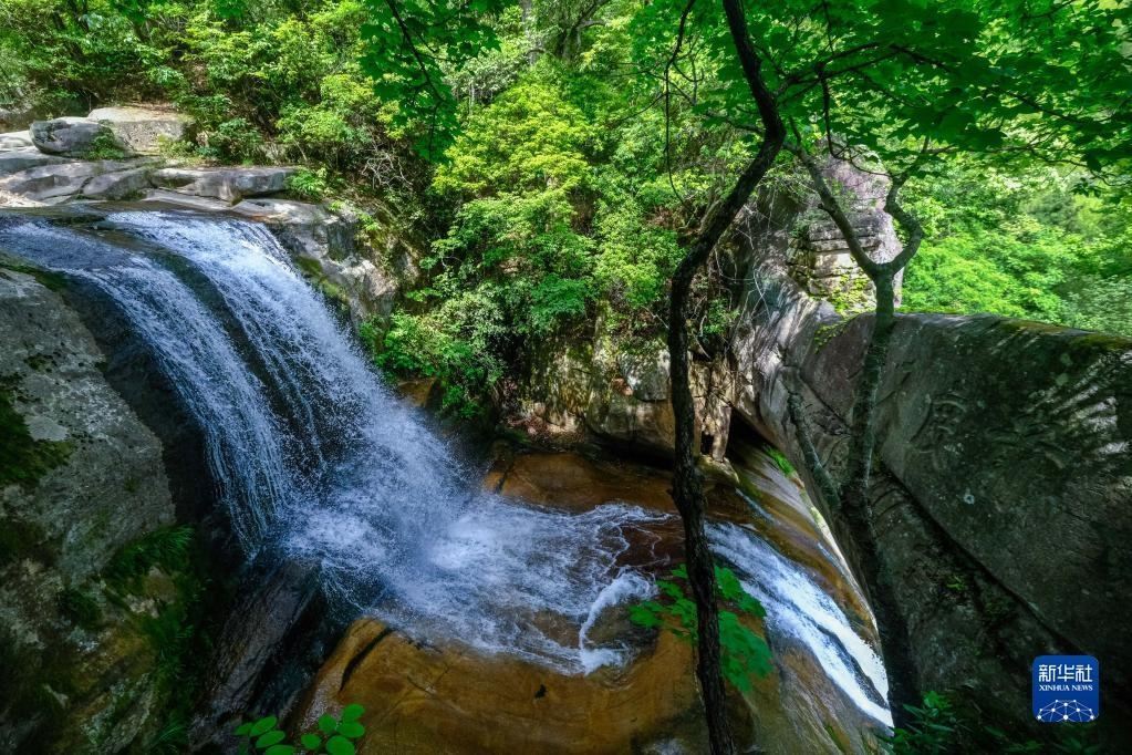 天臺山瓊臺仙谷景區(qū)(5月16日攝)。徐霞客在游記中寫道:“峰頭中斷,即為雙闕;雙闕所夾而環(huán)者,即為瓊臺?!?