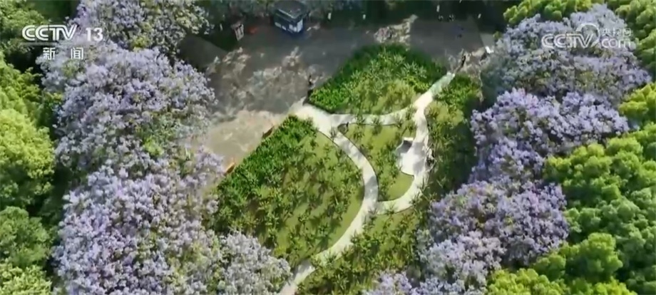 據(jù)了解,藍(lán)花楹樹冠高大,最高可達(dá)20米,花期預(yù)計(jì)將持續(xù)到6月份。