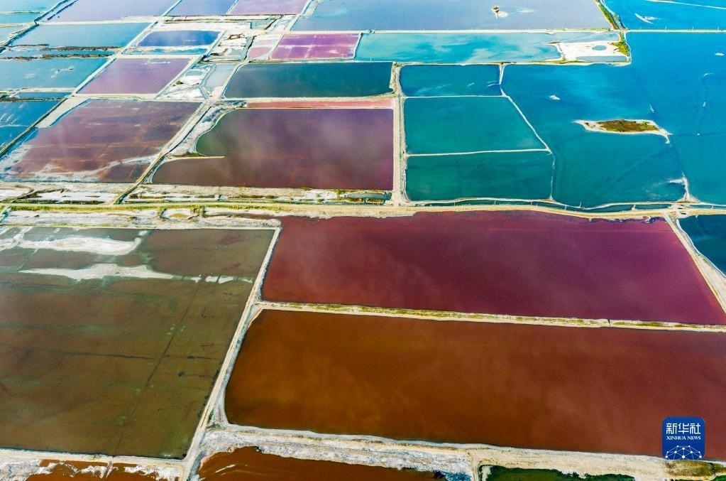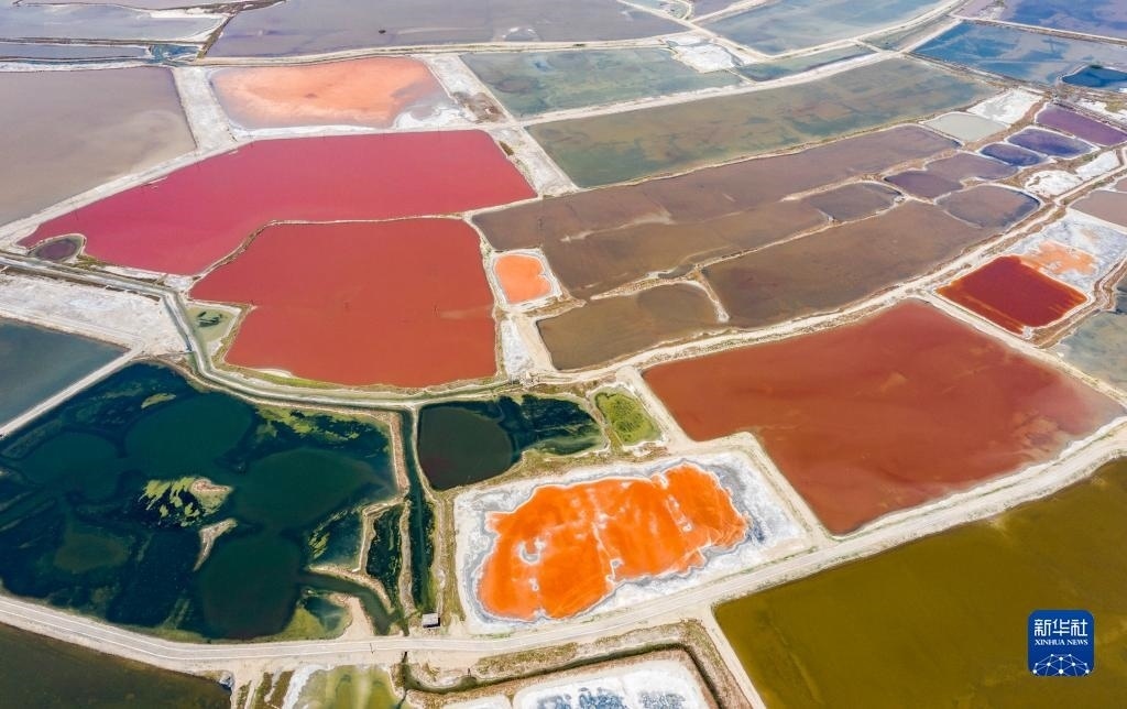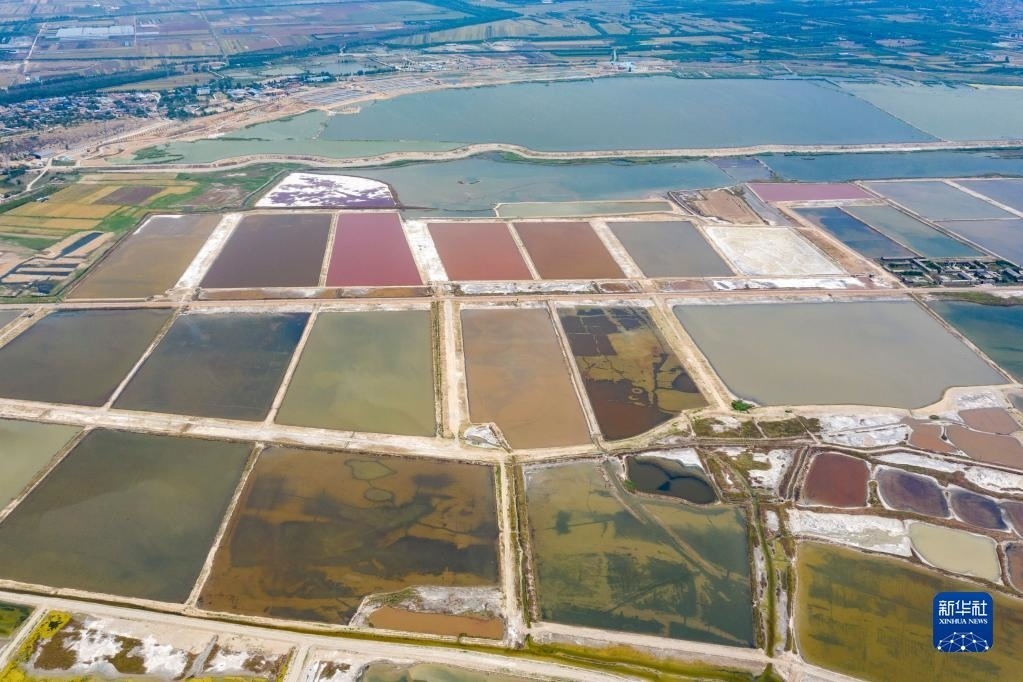 這是5月16日拍攝的運城鹽湖一景(無人機照片)。