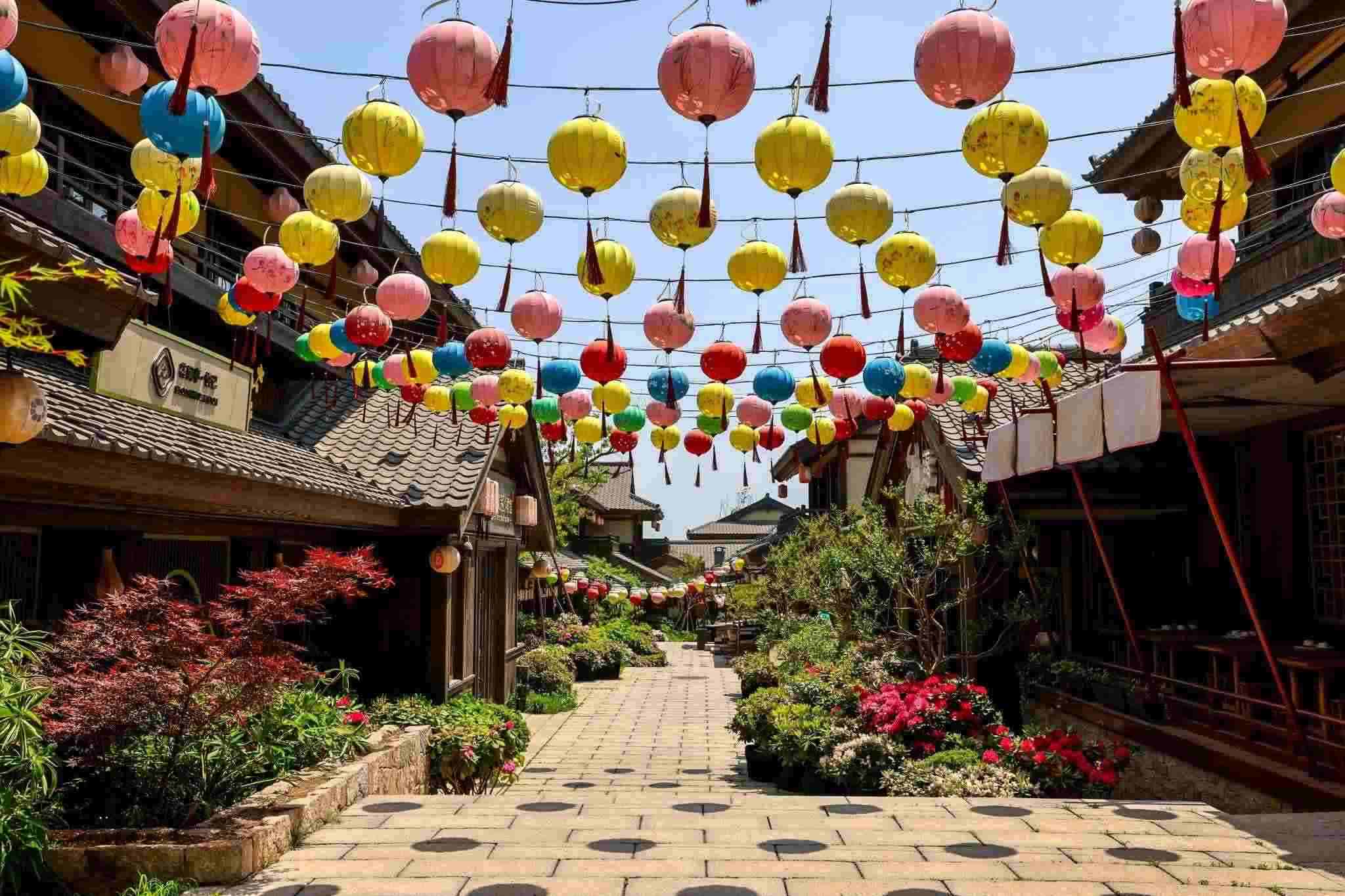 2023年5月19日,青島,西海岸新區(qū)藏馬鎮(zhèn),鑲嵌在藏馬山山麓的網(wǎng)紅“打卡地”阿朵花嶼美不勝收。漫步在這個(gè)唐風(fēng)古鎮(zhèn)中,繽紛花色點(diǎn)綴在建筑之間,好似畫(huà)中景色,讓人流連沉醉。視覺(jué)中國(guó)