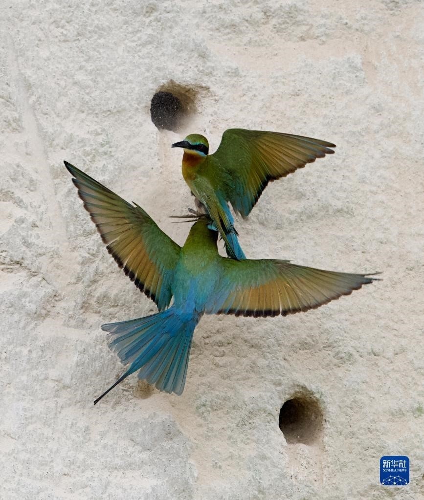 5月20日,兩只栗喉蜂虎在繁殖地筑巢。