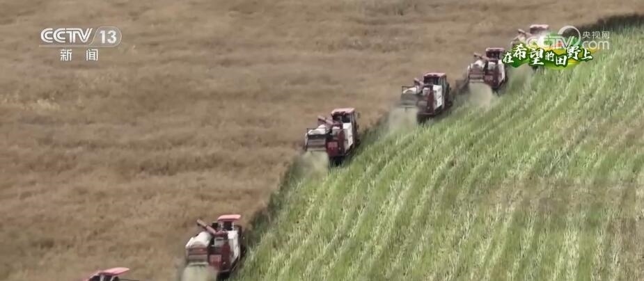 總臺(tái)央視記者 陳燁煒:我現(xiàn)在是在湖北省枝江市的一處油菜地里,在我身后,幾臺(tái)收割機(jī)正來回穿梭作業(yè)。今年這里采用的是分段式收割方法,這種方式可以大大降低機(jī)收的損失率,助力增產(chǎn)增收。