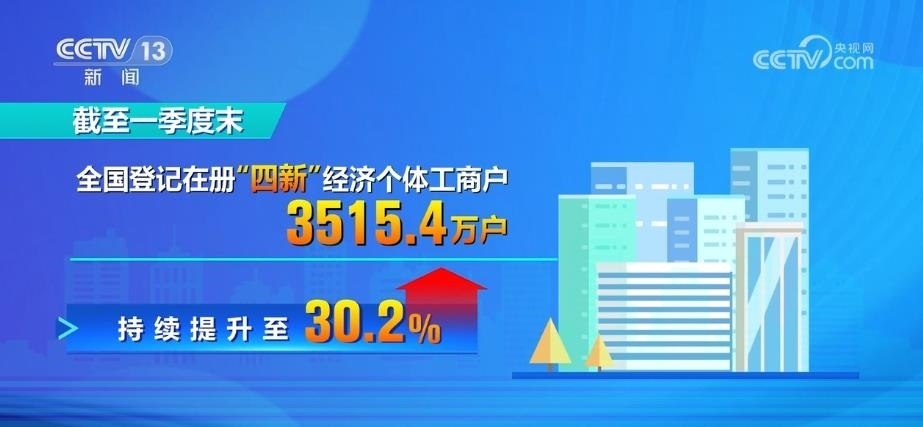 近年來,隨著新技術(shù)、新產(chǎn)業(yè)、新業(yè)態(tài)、新模式的蓬勃發(fā)展,網(wǎng)絡(luò)直播、微商電商等“新個(gè)體經(jīng)濟(jì)”不斷涌現(xiàn),為我國(guó)經(jīng)濟(jì)轉(zhuǎn)型升級(jí)注入了新的活力。截至一季度末,全國(guó)登記在冊(cè)“四新”經(jīng)濟(jì)個(gè)體工商戶3515.4萬戶,總量占比由2019年的24.9%持續(xù)提升至30.2%。