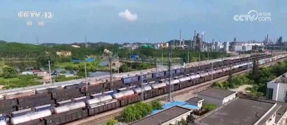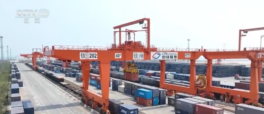 在西部陸海新通道關鍵節(jié)點的欽州港東站,鐵海聯(lián)運貨物上下列車、進出港口24小時不停歇,每天最多到發(fā)的鐵海聯(lián)運班列有21列。截至目前,西部陸海新通道鐵海聯(lián)運班列已輻射我國17省份、60市、115個車站,通達全球119個國家和地區(qū)的393個港口。