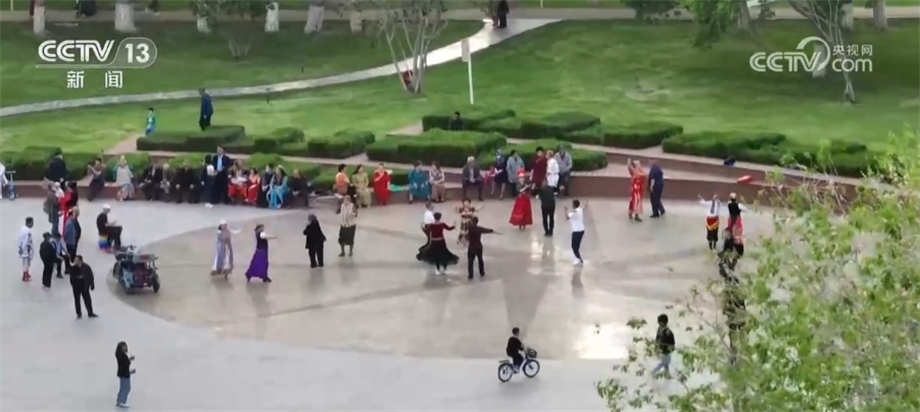 塔城市新城街道哈爾墩社區(qū)黨總支書記 主任 巴哈爾古力(維吾爾族):音樂一響起來,他們都特別喜歡跳。比如說我是維吾爾族,我也會跳比如說蒙古族舞、俄羅斯族舞、塔塔爾族舞、漢族舞,還有維吾爾族舞、哈薩克族舞,反正哪個民族的音樂響起來,我們都是不管是會還是不會,我們通過“百家宴”都學。