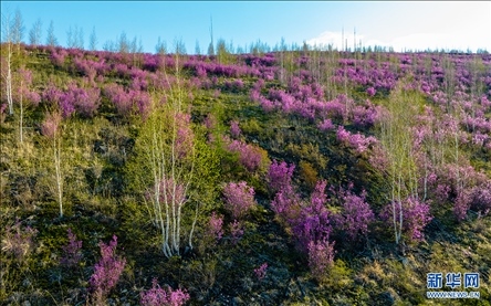 5月22日,內(nèi)蒙古大興安嶺北部“杜鵑花谷”杜鵑花綻放。新華網(wǎng)發(fā)(李明 攝)