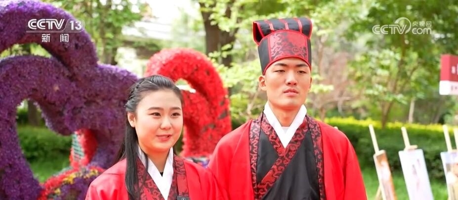 在江西貴溪、山東巨野等地,五月份組織了多場主題為“不要彩禮要幸?!钡募w婚禮,倡導新人們選擇簡約的婚禮儀式。在河北省河間市的集體婚禮現場,紅毯艷艷、絲竹裊裊,新人們身著傳統(tǒng)禮服,在證婚人、主婚人的見證下,按照周制漢婚的傳統(tǒng)儀式開啟他們愛的旅程。