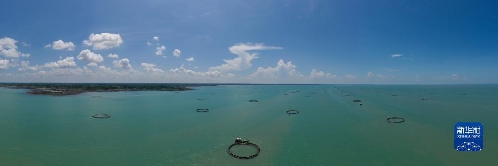 湛江徐聞西連鎮(zhèn)的“海上牧場”(5月27日攝,無人機(jī)全景照片)。