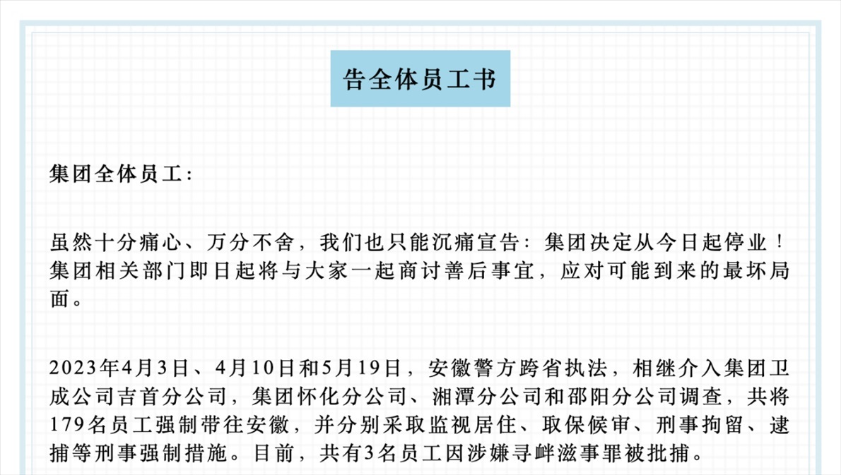 ·“催收巨頭”湖南永雄發(fā)布停業(yè)消息后又撤回,自稱179名員工被采取刑事強(qiáng)制措施。警方回應(yīng):該案件正在進(jìn)一步偵辦中。