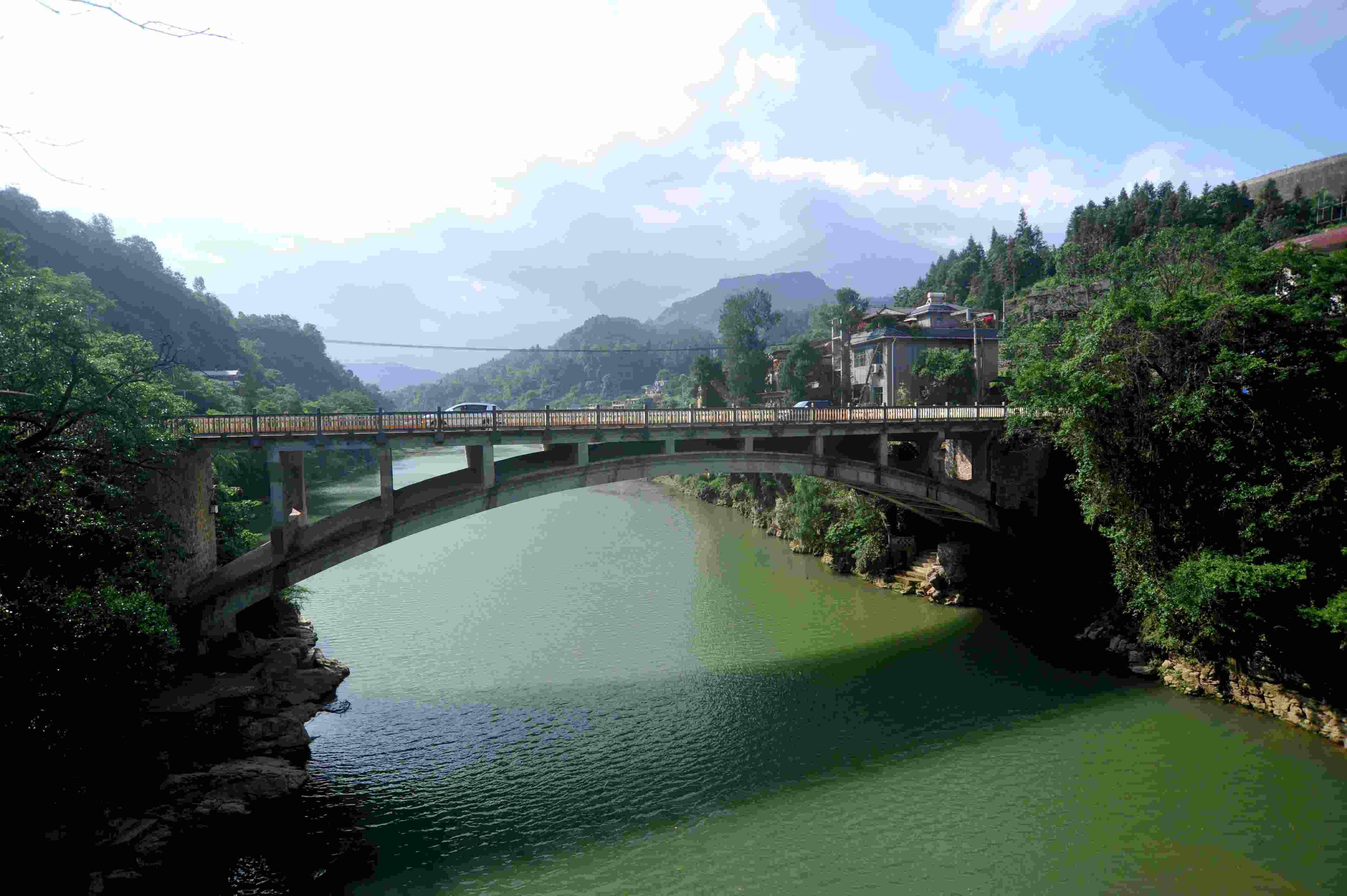 2023年5月27日拍攝的貴州省黃平縣重安鎮(zhèn)“三朝橋”之鋼筋混凝土曲拱橋。 (寧堅 趙軍)
