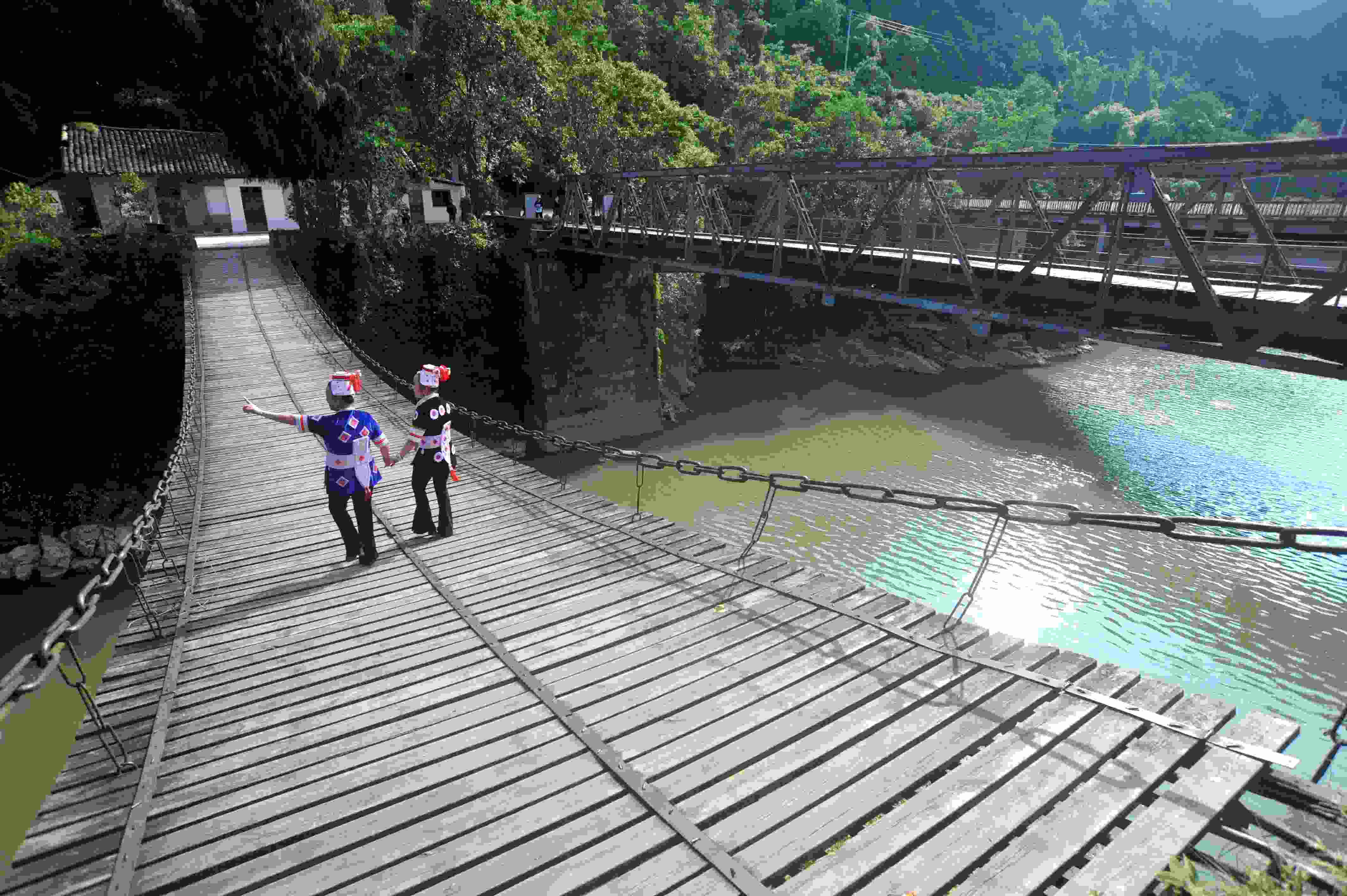 2023年5月27日拍攝的貴州省黃平縣重安鎮(zhèn)“三朝橋”之鐵索橋。 (寧堅 趙軍)