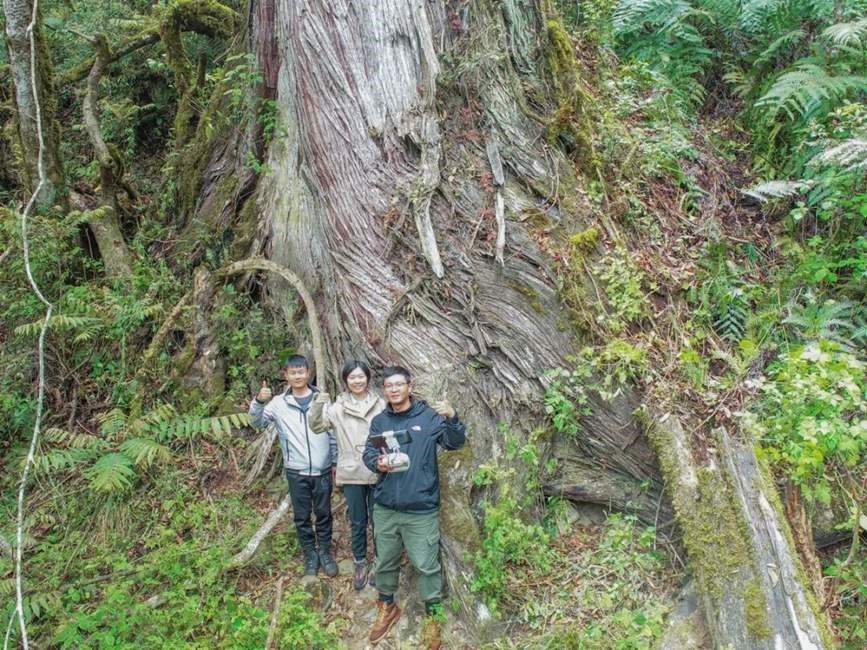 測(cè)量人員站在西藏柏木最高樹下合照。