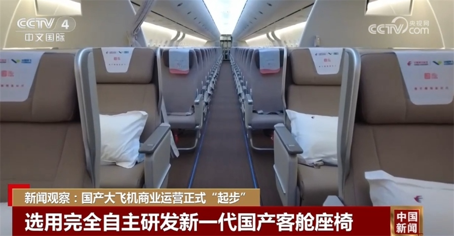 另外,飛機公務(wù)艙、經(jīng)濟艙均選用完全自主研發(fā)的新一代國產(chǎn)客艙座椅。其中,8個公務(wù)艙座椅為全鋁合金框架結(jié)構(gòu),采用搖籃式設(shè)計,后靠可達120度,前后座椅間距超過1米;156個經(jīng)濟艙設(shè)計采用3-3布局,中間座位比兩邊座位寬1.5厘米;加上C919客艙擁有2.25米的過道高度,旅客能感受到舒適的頂部和前方視覺空間。