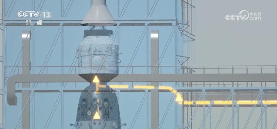 總臺央視記者 勞春燕:這個發(fā)射塔架就好像是一個100多米高的“鋼鐵巨人”。它有一個學名叫“臍帶塔”,為什么叫這個名字?因為塔架里有各種線纜和管路,就像嬰兒的臍帶一樣,可以為火箭和飛船輸送能量與養(yǎng)分。另外,塔架還裝了空調(diào)和保溫層,可以為船箭創(chuàng)造一個合適的環(huán)境。有了它的全方位保護,火箭適應環(huán)境的能力大大提高,即使碰上零下20℃的極寒天氣依然可以正常發(fā)射。
