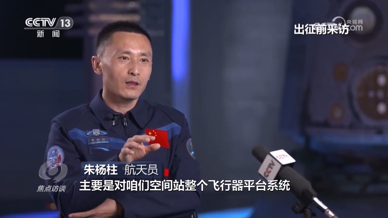 航天員朱楊柱:“我作為航天飛行工程師,主要對(duì)空間站整個(gè)飛行器平臺(tái)系統(tǒng)進(jìn)行日常維護(hù)、保養(yǎng),同時(shí)也要照顧好很多試驗(yàn)、實(shí)驗(yàn)和一些艙內(nèi)外的載荷、科學(xué)機(jī)柜。”
