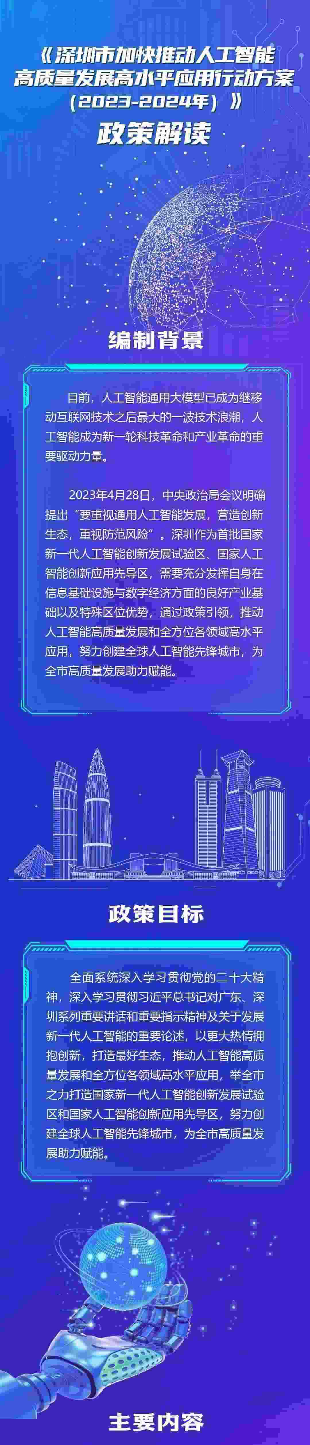 央視網(wǎng)消息:近日,中共深圳市委辦公廳、深圳市人民政府辦公廳發(fā)布《深圳市加快推動人工智能高質量發(fā)展高水平應用行動方案(2023—2024年)》。主要內容如下: