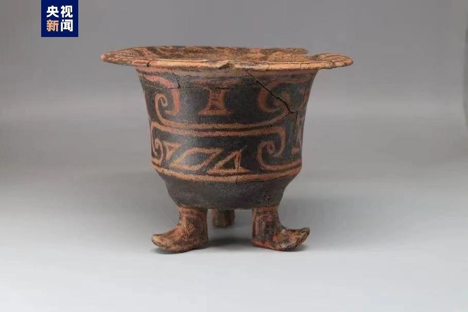 △大坨頭文化M75出土的靴形足彩繪陶尊