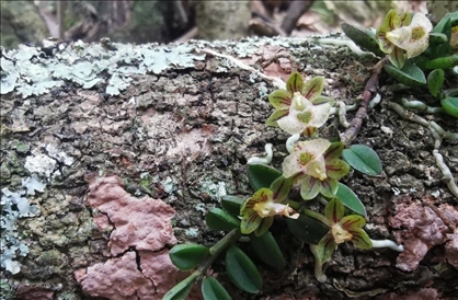 蘭科新物種——臥龍無柱蘭,于2021年11月發(fā)表于國際植物學期刊《北歐植物學》,是程躍紅和林紅強等人在轄區(qū)巡護監(jiān)測過程中發(fā)現的,以模式產地“臥龍”命名。該蘭科植物生長在海拔2700米左右的陡峭崖壁上,植株高約19-22厘米,花期7-8月,莖為呈紫紅色,開白色小花,中心為綠色,目前僅在大熊貓國家公園臥龍片區(qū)發(fā)現1個居群,約70株成熟個體,參照IUCN(世界自然保護聯盟)的標準,臥龍無柱蘭被認定為“極度瀕?!钡燃壍闹参?。