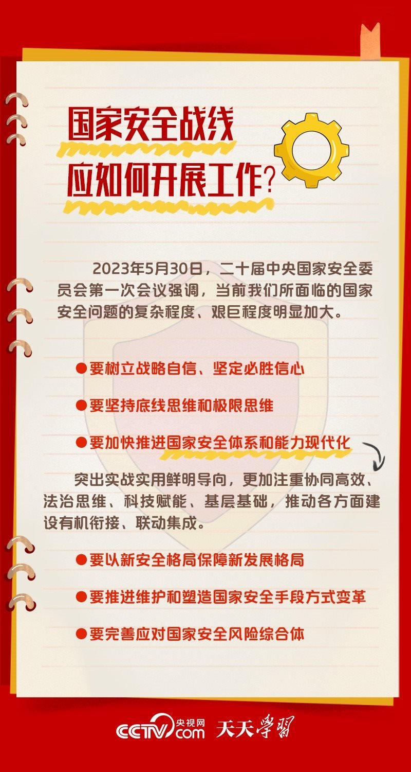 5月30日,習(xí)近平總書記主持召開二十屆中央國家安全委員會(huì)第一次會(huì)議時(shí)強(qiáng)調(diào),要全面貫徹黨的二十大精神,深刻認(rèn)識(shí)國家安全面臨的復(fù)雜嚴(yán)峻形勢,正確把握重大國家安全問題,加快推進(jìn)國家安全體系和能力現(xiàn)代化,以新安全格局保障新發(fā)展格局,努力開創(chuàng)國家安全工作新局面。