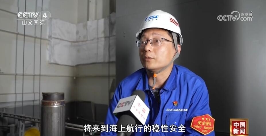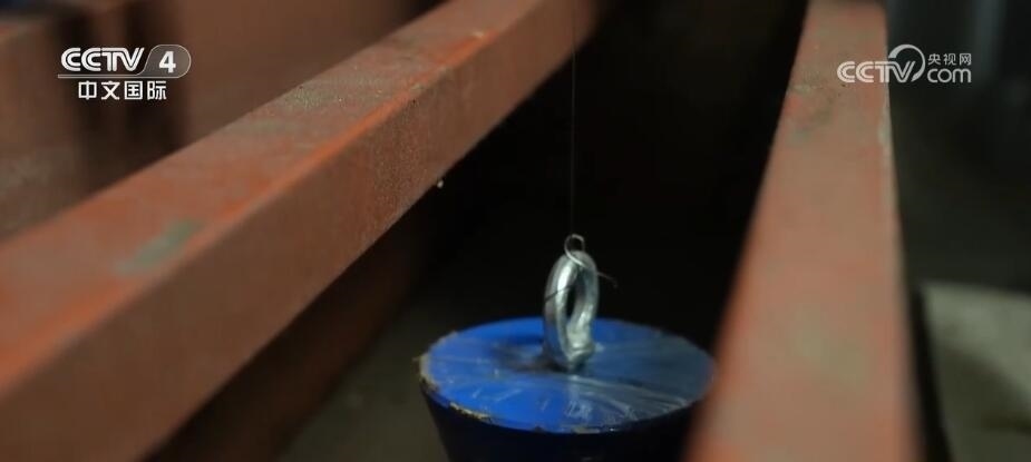 中國船舶外高橋造船大型郵輪項目技術(shù)副經(jīng)理 李嘉寧:這是一個擺錘,它很重的。這個是一個油槽,里面放滿油,上面布置鋼尺,會精確地讀數(shù)。當(dāng)船發(fā)生傾斜之后,(通過)擺錘移動多少的距離就可以知道這個船橫傾的狀態(tài)。郵輪傾斜試驗獲得船舶的重量和重心這兩個數(shù)據(jù),是大型郵輪最重要的兩個數(shù)據(jù)指標(biāo),因為它決定了這條船將來到海上航行的穩(wěn)性安全。