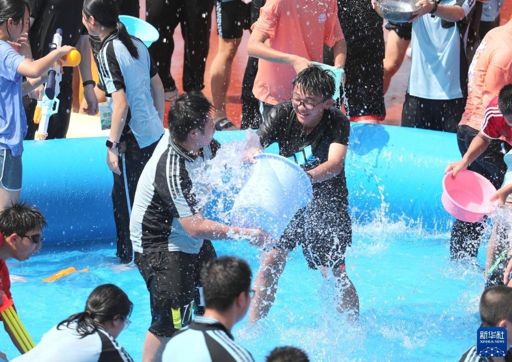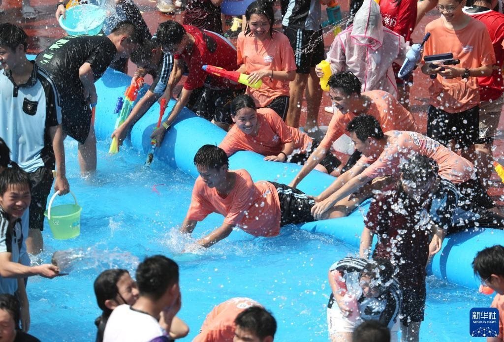 6月2日,學(xué)生們享受潑水活動(dòng)帶來(lái)的快樂(lè)。