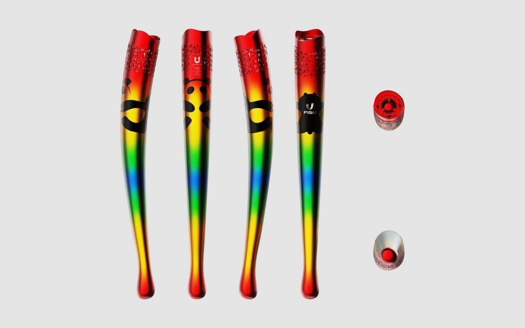 作為大型體育賽事中的一個重要象征物,火炬無疑是傳遞城市精神的重要窗口。成都大運會火炬“蓉火”取成都的簡稱“蓉”,同時寓有“融合”“包容”之意?;鹁孢\用多彩漸變的大運會主視覺色塊,將朱紅、明黃、翠綠、湖藍四個漸變色整合起來,又呈現(xiàn)出成都熱情、活力、時尚的多彩生活與大學生的斑斕青春。