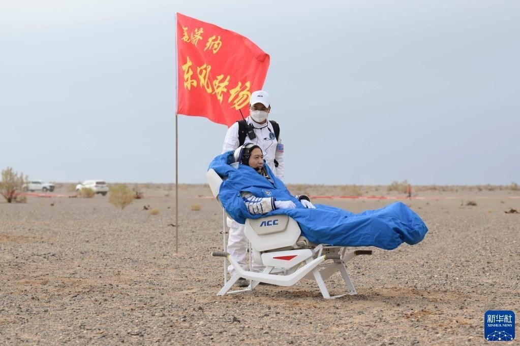 6月4日,神舟十五號(hào)載人飛船返回艙在東風(fēng)著陸場(chǎng)成功著陸。這是航天員鄧清明安全順利出艙。新華社記者 李志鵬 攝
