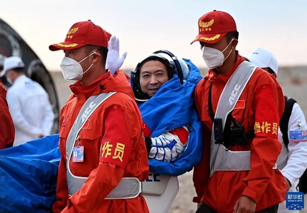 6月4日,神舟十五號(hào)載人飛船返回艙在東風(fēng)著陸場(chǎng)成功著陸,神舟十五號(hào)載人飛行任務(wù)取得圓滿成功。這是航天員張陸安全順利出艙。新華社記者 連振 攝