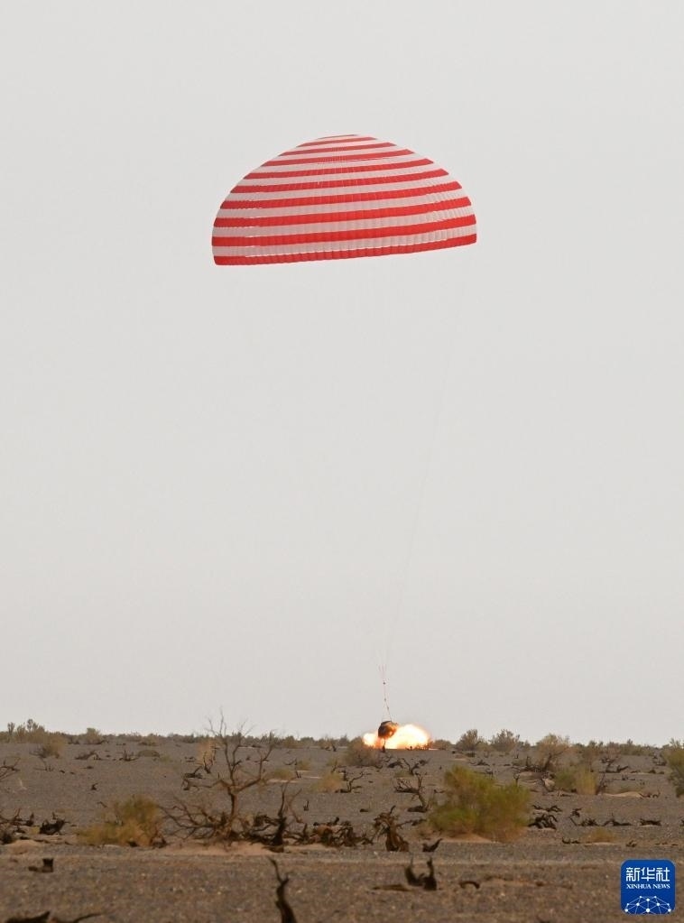6月4日,神舟十五號(hào)載人飛船返回艙在東風(fēng)著陸場(chǎng)成功著陸。新華社記者 任軍川 攝