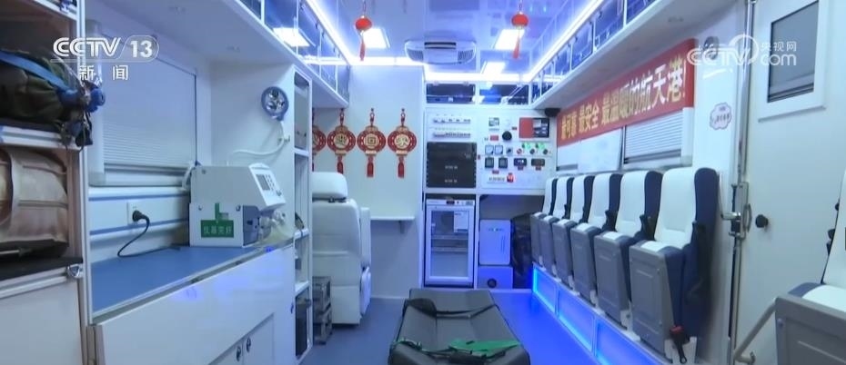 酒泉衛(wèi)星發(fā)射中心醫(yī)院航天員院外醫(yī)療救護(hù)隊隊員 喬陽:以前航天員返回地面后,醫(yī)監(jiān)醫(yī)保是在直升機(jī)上進(jìn)行。現(xiàn)在醫(yī)監(jiān)醫(yī)救車作為航天員返回地球后醫(yī)監(jiān)醫(yī)保的首選載體,空間大、獨立、舒適、方便。
