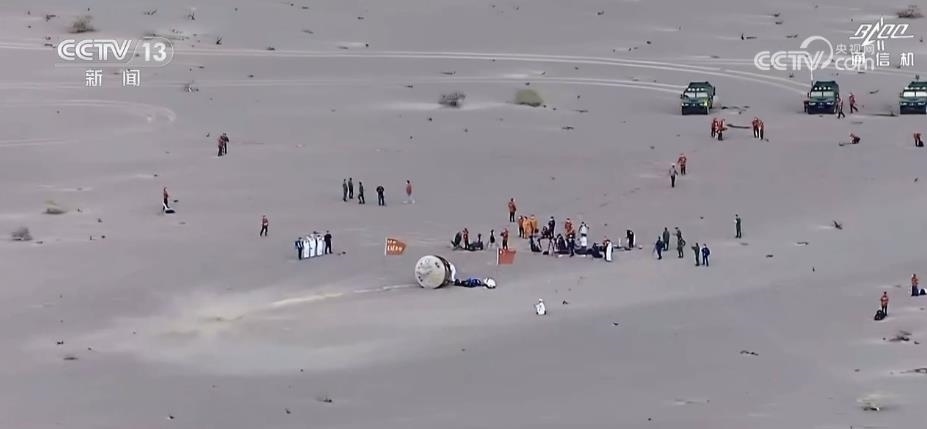 返回艙成功著陸,擔(dān)負搜救回收任務(wù)的搜救分隊及時發(fā)現(xiàn)目標并抵達著陸現(xiàn)場。