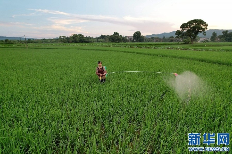 近日,在江西省撫州市廣昌縣,3.4萬多畝早稻正逐步進(jìn)入分蘗期,稻田里綠油油一片,禾苗根壯、長(zhǎng)勢(shì)喜人。農(nóng)民正忙著噴灑農(nóng)藥,進(jìn)行防治病蟲害作業(yè),為夏糧豐產(chǎn)豐收打下基礎(chǔ)。(危仁鵬 徐維棟)