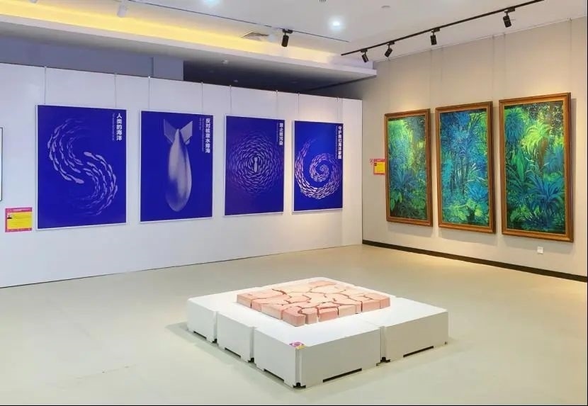 本次展覽以油畫、版畫、國(guó)畫、影像、雕塑、裝置藝術(shù)以及創(chuàng)新設(shè)計(jì)等多種形式,回應(yīng)著藝術(shù)家們對(duì)于“生態(tài)流變”這一意象與內(nèi)涵的理解,以及對(duì)“環(huán)境共生”這一問題的思考與探索。
