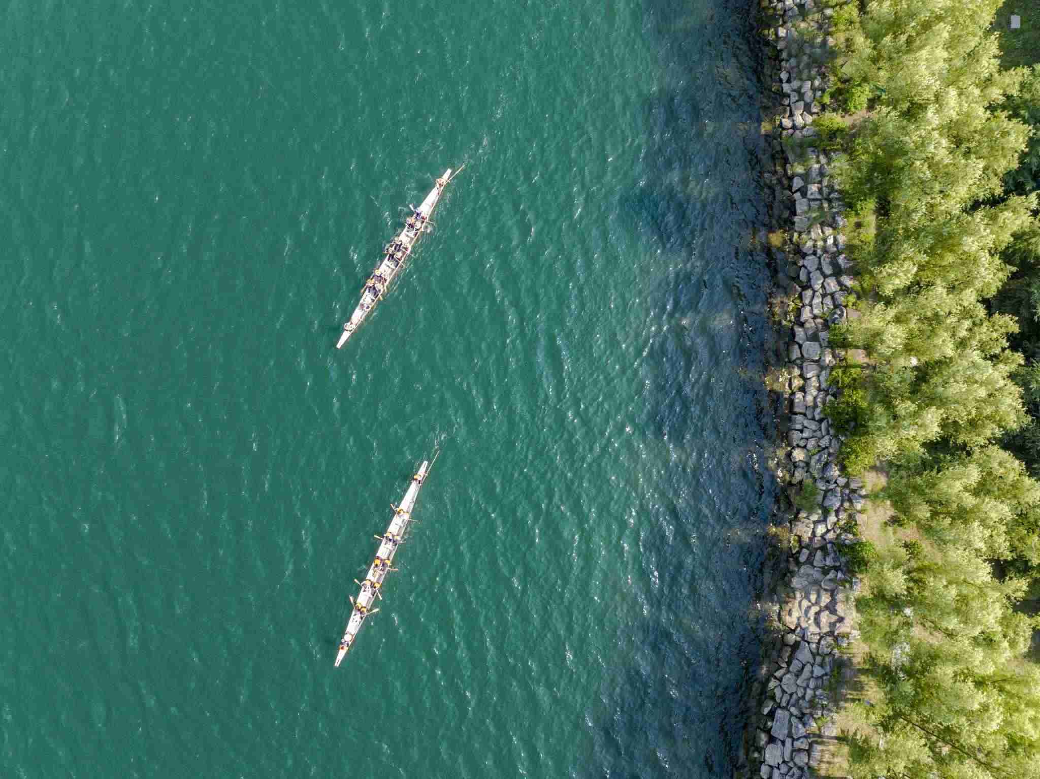2023年6月8日,江蘇連云港,東??h西雙湖風(fēng)景區(qū),多支龍舟隊(duì)在西雙湖水域進(jìn)行訓(xùn)練,積極備戰(zhàn)端午龍舟賽。視覺中國