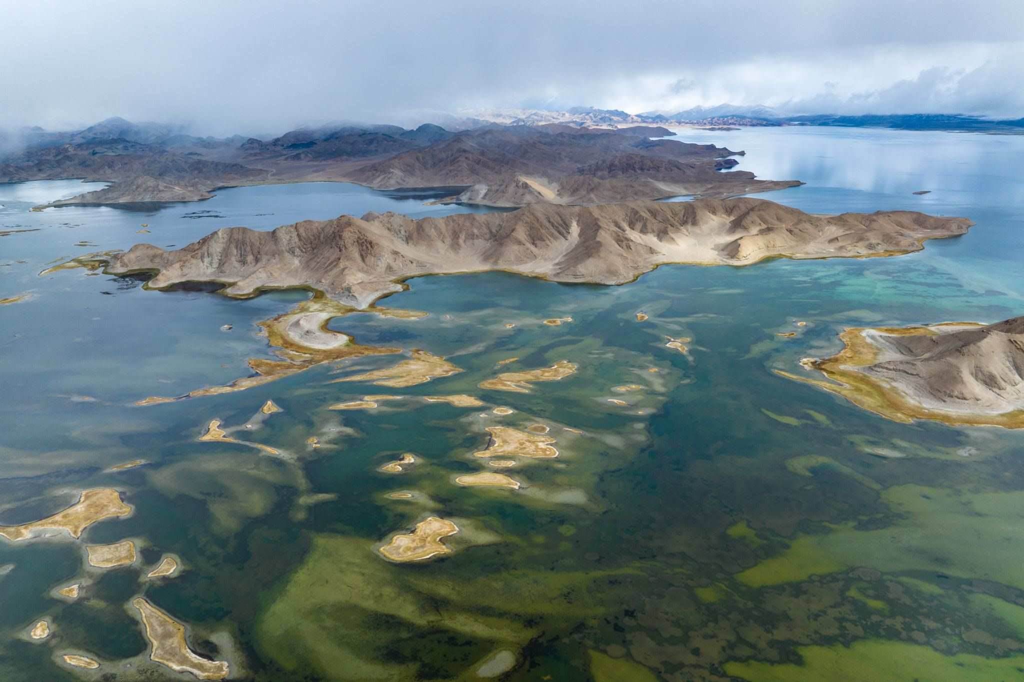 2023年6月6日,西藏阿里,日土縣班公湖,湛藍(lán)的湖水、潔白的雪山、奇特的沿湖景觀,構(gòu)成一幅夏日醉美畫(huà)卷。視覺(jué)中國(guó)