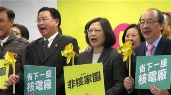 到了2015年選舉年,民進黨煽動發(fā)起大型“反核”游行,一邊拿核泄漏事件恐嚇民眾,一邊喊出華而不實的“暖心”口號——“用愛發(fā)電”。民進黨更不顧核電在臺灣電力供應(yīng)體系中的重要位置,在沒有經(jīng)過任何科學(xué)論證的情況下,“拍腦門式”提出“2025非核家園”能源轉(zhuǎn)型政策,要在2025年全面廢除核電,將再生能源發(fā)電量占比提升至20%以補足電力缺口。