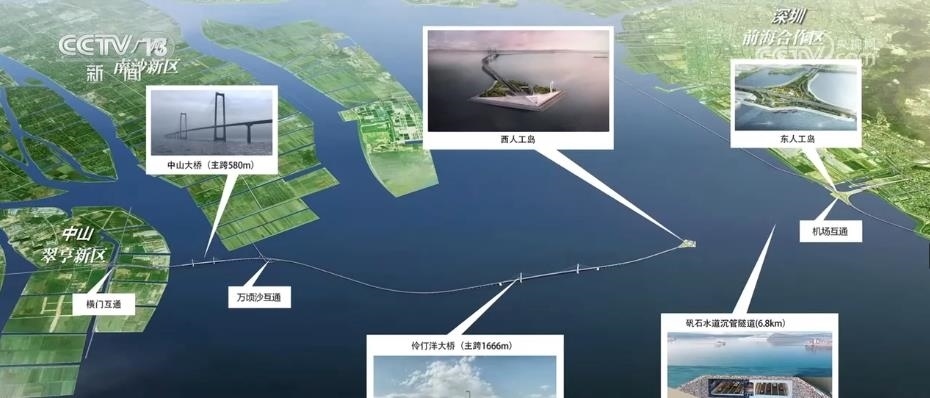 全長約24公里的深中通道橫跨珠江口,集“橋、島、隧、水下互通”于一體,關(guān)鍵控制性工程為伶仃洋大橋和海底沉管隧道,控制性工程包括中山大橋、東人工島、西人工島。