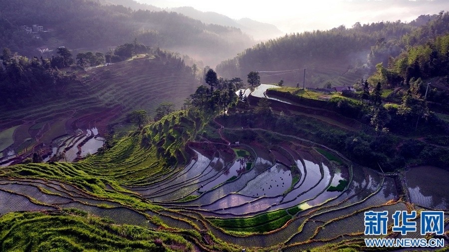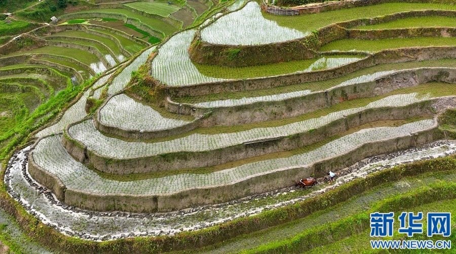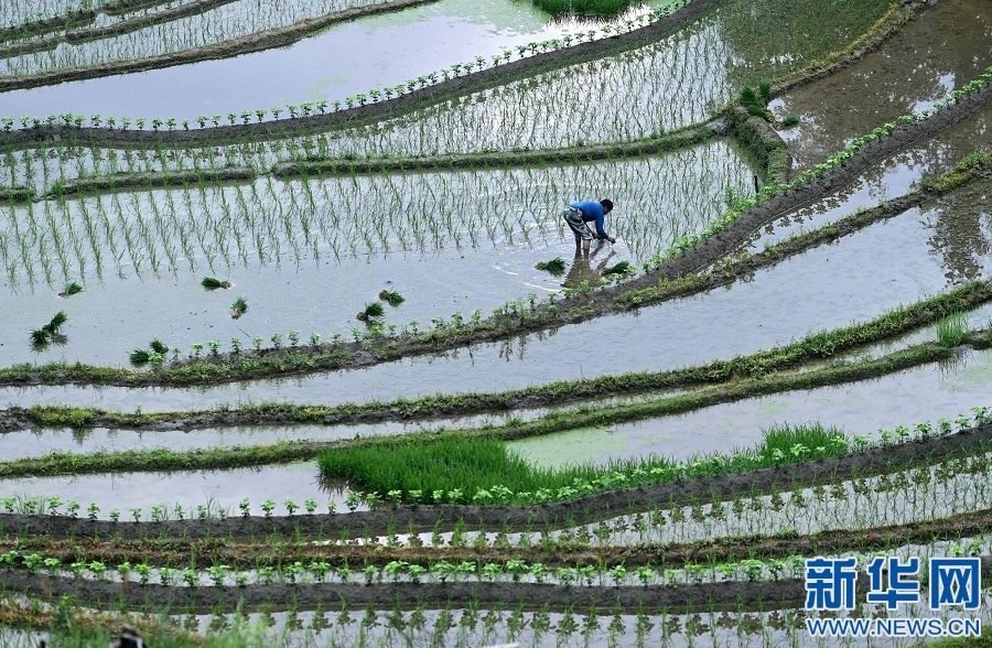 近日,江西省宜春市萬載縣高村鎮(zhèn)新竹村村民在高山梯田勞作,忙碌的身影與層層疊疊的梯田交相輝映。新華網(wǎng)發(fā) 鄧龍華 攝