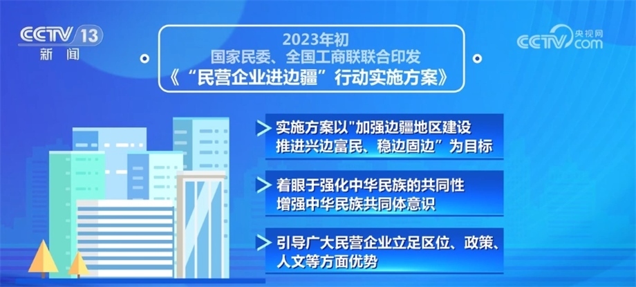 2023年初,國(guó)家民委、全國(guó)工商聯(lián)聯(lián)合印發(fā)了《“民營(yíng)企業(yè)進(jìn)邊疆”行動(dòng)實(shí)施方案》,實(shí)施方案以“加強(qiáng)邊疆地區(qū)建設(shè),推進(jìn)興邊富民、穩(wěn)邊固邊”為目標(biāo),著眼于強(qiáng)化中華民族的共同性、增強(qiáng)中華民族共同體意識(shí),引導(dǎo)廣大民營(yíng)企業(yè)立足區(qū)位、政策、人文等方面優(yōu)勢(shì),積極參與邊疆地區(qū)基礎(chǔ)設(shè)施建設(shè),助力邊疆地區(qū)提升資源轉(zhuǎn)化能力,推動(dòng)邊疆地區(qū)融入全國(guó)統(tǒng)一大市場(chǎng),促進(jìn)邊疆各民族交往交流交融,共同走向社會(huì)主義現(xiàn)代化,實(shí)現(xiàn)共同富裕。