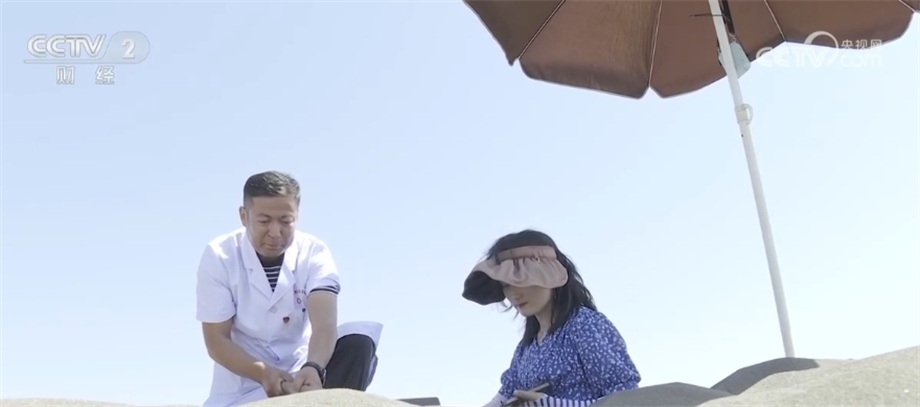 連日來的高溫天氣讓新疆吐魯番掀起了沙療“熱”。沙療是利用當?shù)鬲毺氐墓鉄豳Y源和氣候地理條件進行的治療方式,讓高溫天氣成為了當?shù)厝罕娫鍪罩赂坏摹盁豳Y源”。