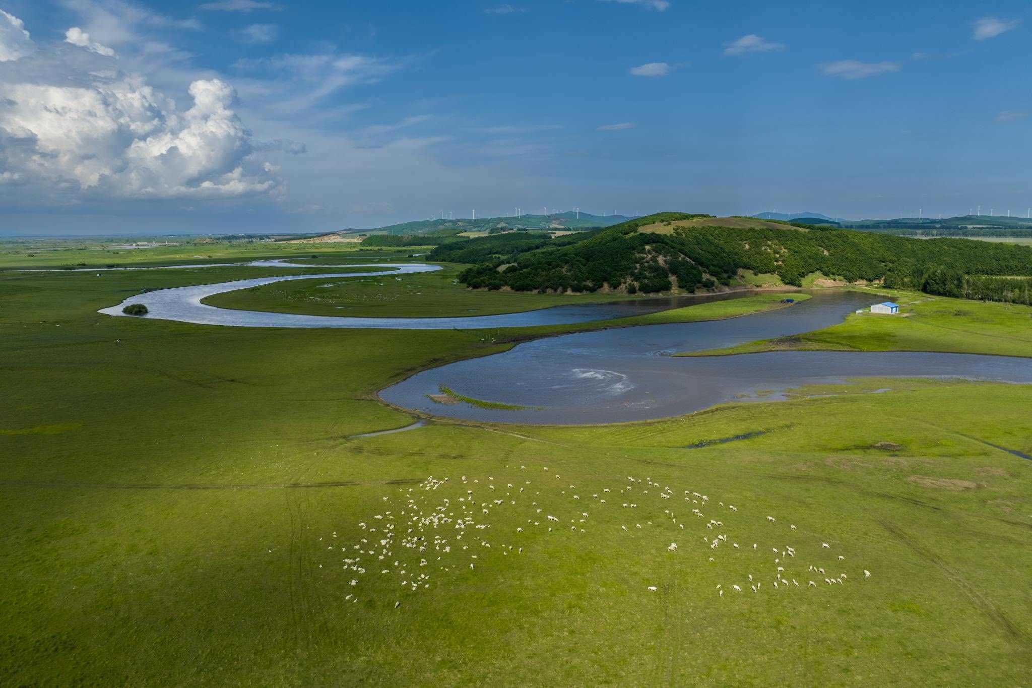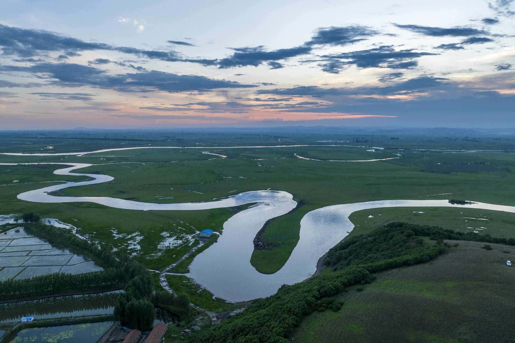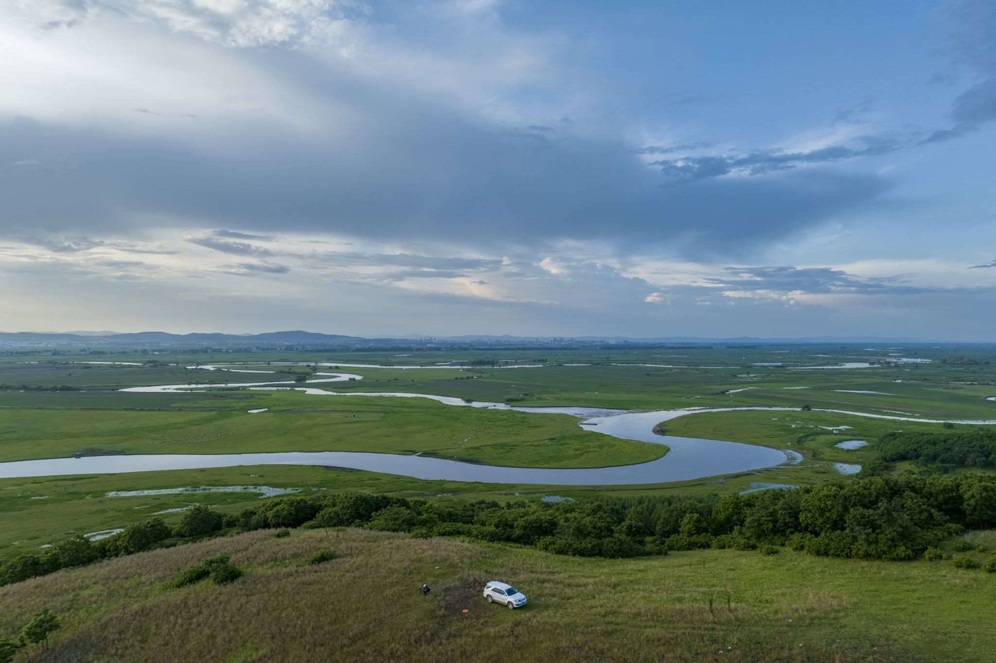 2023年6月12日,黑龍江,穆棱河流域現多云天氣,河套平原牛羊成群,景色宜人。視覺中國