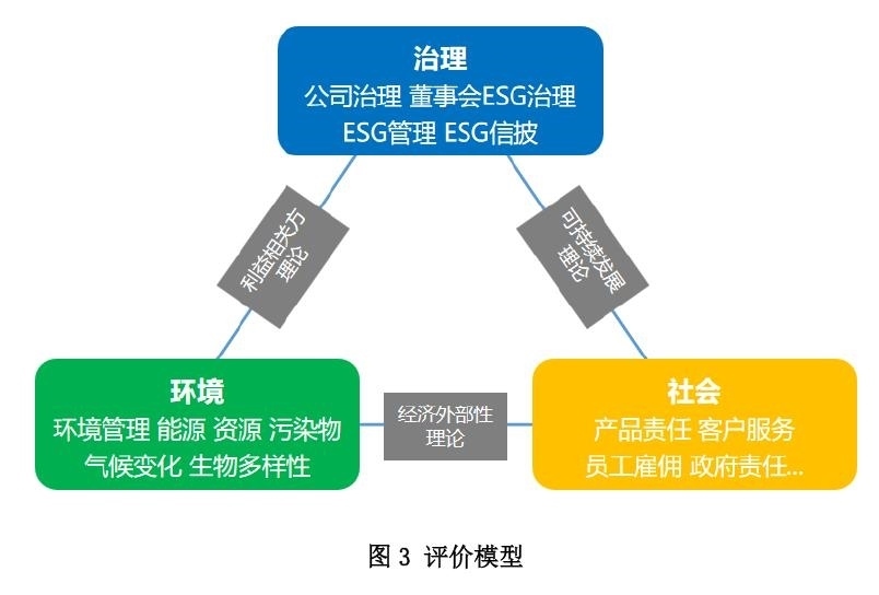 基于此,我們在構(gòu)建ESG評(píng)價(jià)模型時(shí),打破現(xiàn)有主流ESG評(píng)級(jí)體系重點(diǎn)關(guān)注ESG風(fēng)險(xiǎn)管理(即企業(yè)的負(fù)外部性)的常規(guī)思路,將企業(yè)經(jīng)營發(fā)展對社會(huì)環(huán)境的正向價(jià)值與貢獻(xiàn)(即企業(yè)的正外部性)納入考量,創(chuàng)新構(gòu)建了包含“環(huán)境、社會(huì)、治理”三個(gè)維度且兼顧風(fēng)險(xiǎn)管理和社會(huì)價(jià)值貢獻(xiàn)的ESG評(píng)價(jià)模型(見圖3)。