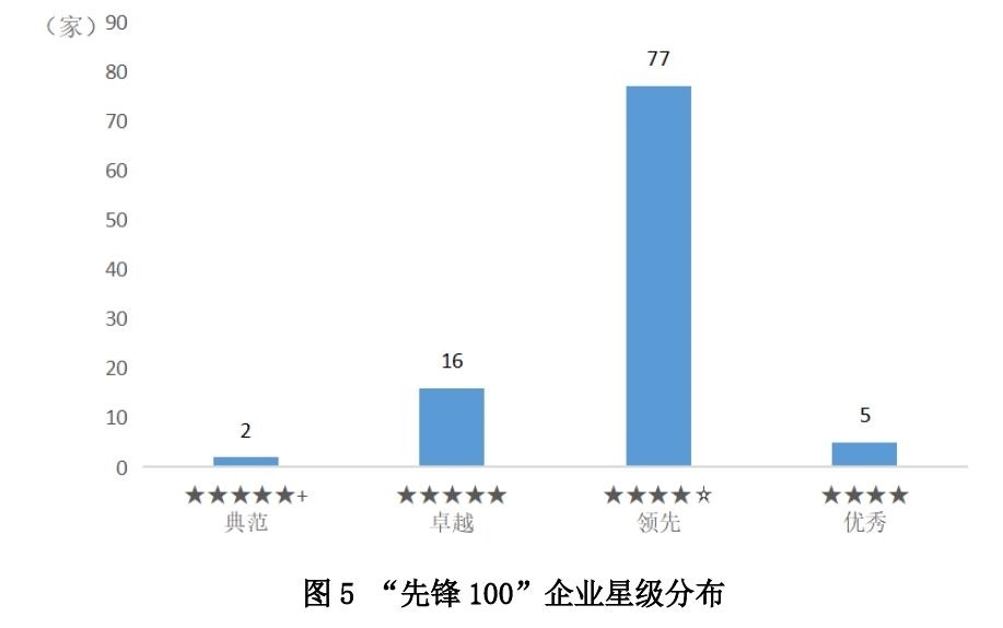 “先鋒100”企業(yè)ESG指數(shù)平均得分高達(dá)75.8分,整體處于領(lǐng)先水平,全面領(lǐng)跑中國上市公司可持續(xù)發(fā)展。其中,2家公司處于五星佳級(jí)水平,是上市公司ESG發(fā)展的典范者;16家處于五星級(jí)水平,是上市公司ESG發(fā)展的卓越者;77家處于四星半級(jí)水平,是上市公司ESG發(fā)展的領(lǐng)先者;5家處于四星級(jí)水平,具有優(yōu)秀的ESG整體表現(xiàn)。當(dāng)前,ESG在中國已進(jìn)入加速發(fā)展時(shí)期,在監(jiān)管部門、投資機(jī)構(gòu)、評(píng)級(jí)機(jī)構(gòu)、研究機(jī)構(gòu)等多方力量的推進(jìn)下,頭部上市公司對ESG的認(rèn)知顯著提升,對ESG工作的重視程度日益提高。